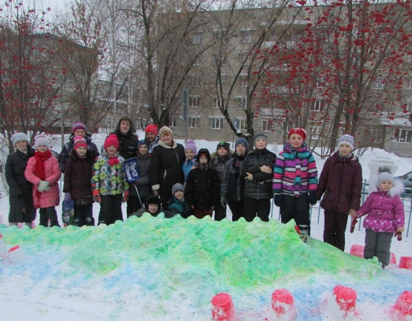 Наш класс принял участие в общешкольном конкурсе на лучшую снежную фигуру на пришкольном участке. В субботу, 19 декабря, ребята  вместе с родителями приступили к созданию нашей фигуры из снега. Все очень старались...И у нас получился замечательный крокодильчик!  Фото здесь.