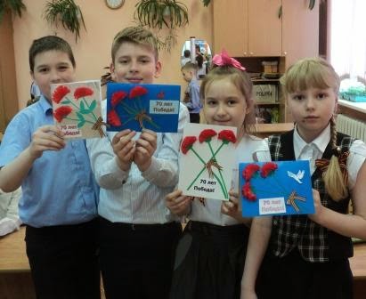 На уроке технологии ребята с особой теплотой делали открытку для ветеранов Великой Отечественной войны. 9 Мая  наши третьеклассники вручат эти открытки своим прабабушкам, прадедушкам или просто участникам парада. Это наша благодарность за ВАШ подвиг, стойкость, мужество и ПОБЕДУ!